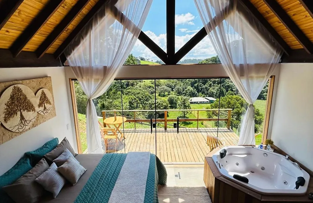 The 1-bedroom Cabana Reserve Da Montanha Camanducaia comes with a bathroom with a spa bathtub, a separate toilet, and a shower. Bath sheets are also featured for your comfort.
