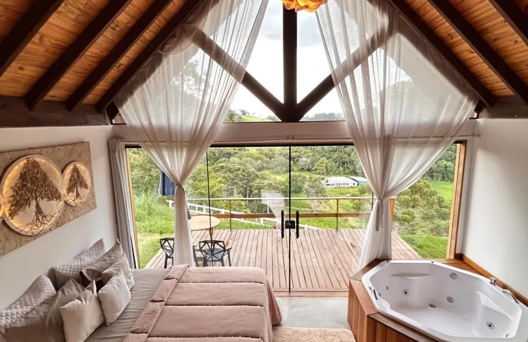 Die Cabana Reserve Da Montanha - Internet Disponivel Camanducaia bietet seinen Gästen ein entspannendes Erlebnis mit einem Jacuzzi.