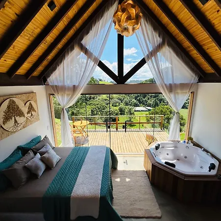 La Cabana Reserve Da Montanha Camanducaia dispone de un cuarto de baño con una bañera, un inodoro separado y una ducha. Los albornoces y las toallas de baño también garantizan una experiencia cómoda.